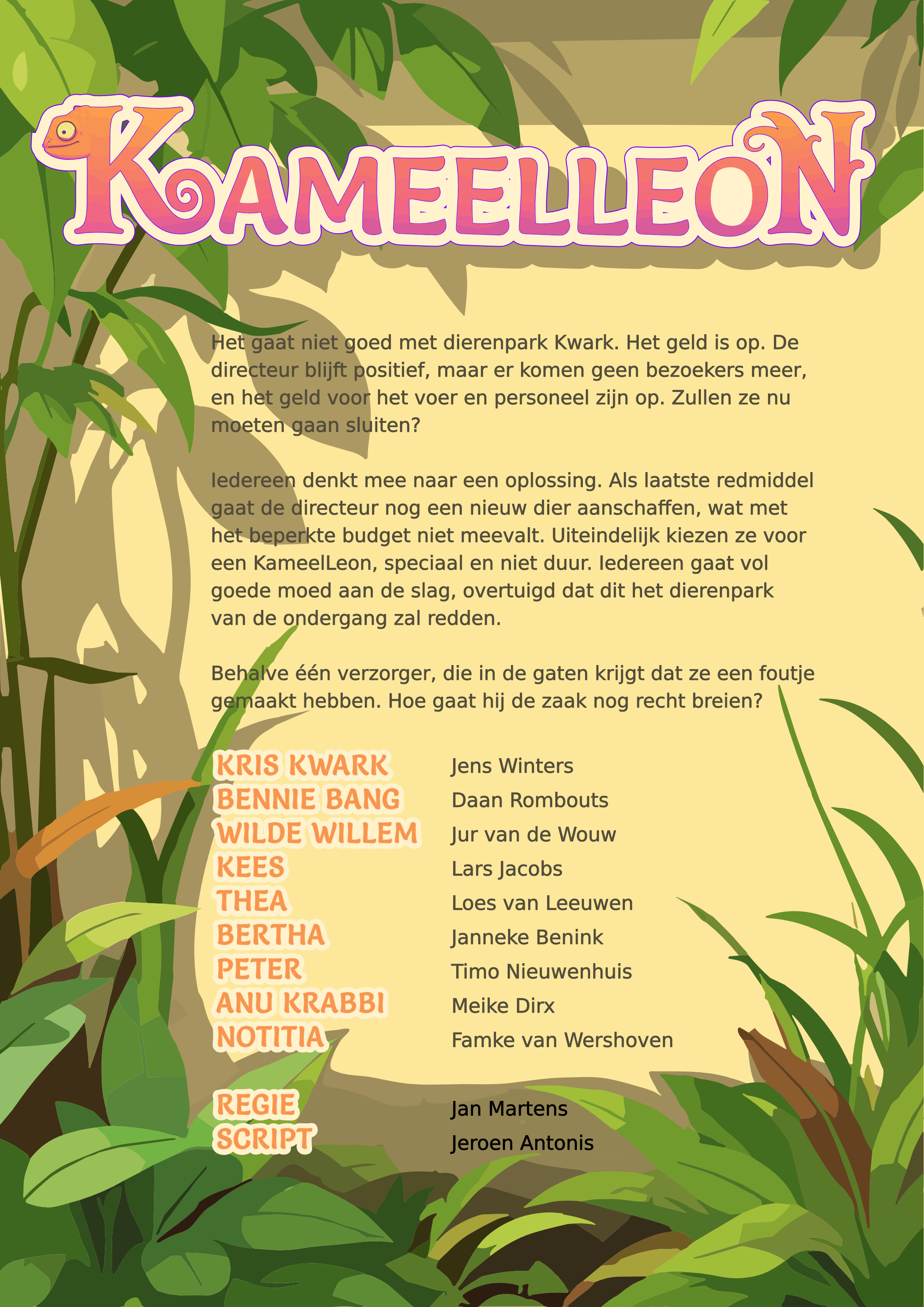 Iedereen denkt mee naar een oplossing. Als laatste redmiddel gaat de directeur nog een nieuw dier aanschaffen, wat met het beperkte budget niet meevalt. Uiteindelijk kiezen ze voor een KameelLeon, speciaal en niet duur. Iedereen gaat vol goede moed aan de slag, overtuigd dat dit het dierenpark van de ondergang zal redden.